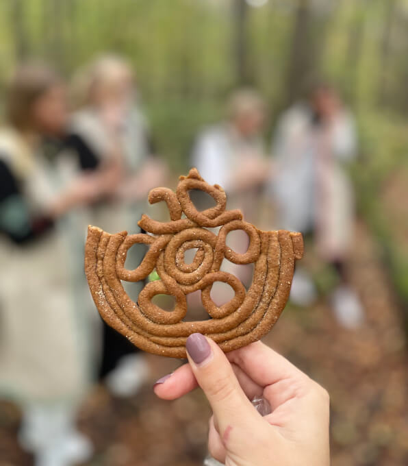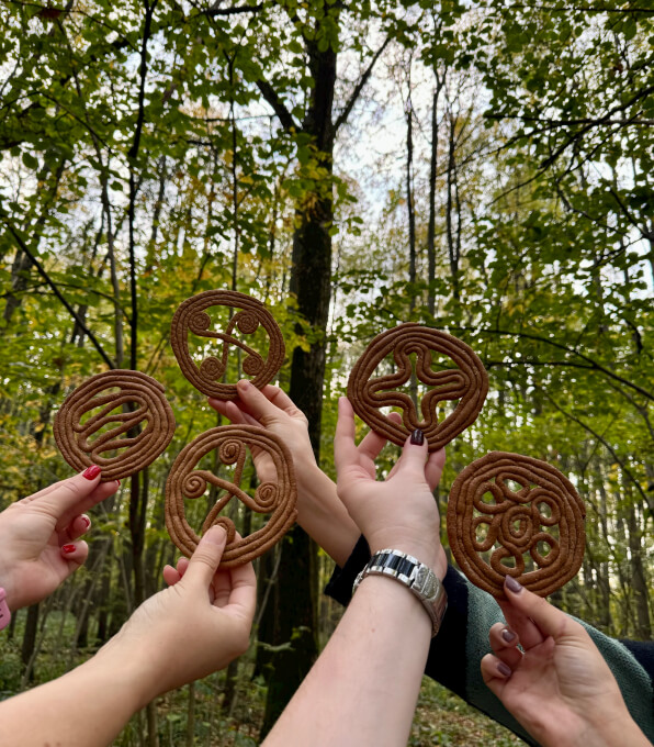 Мы держали в руках украшения наших предков, которым больше 700 лет: перстень с птицей феникс, браслеты, маленького оловянного волка, старинные бубенчики и пряжки. Прикасались к истории... буквально. | ТЕТЁРЫ |  | | | | Традиции наших предков до сих пор живы. Одна из них — выпекание тетёр в день весеннего равноденствия. Это такое обрядовое печенье из ржаной муки, символизирующее солнце.